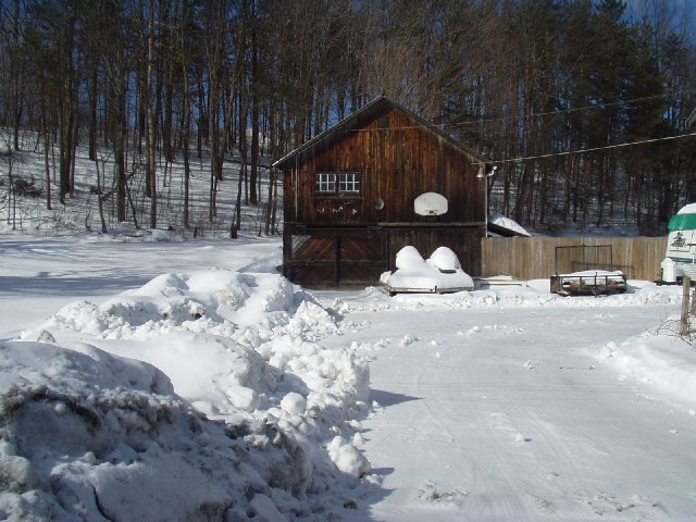 This is Delos Dann with the bull named Glen Pinowatchie" The background is the interesting part though. The building at the rear is his ice house, which stood next to the large shed (just visible to the left) that still stands on the property. Compare the bare hillside to today's picture, below: