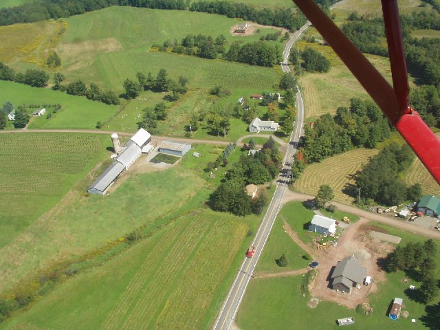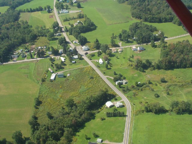 This is a picture I took of the cemetery and the intersection with PA414 in 2003. The cemetery is at the left center, sort of accross from the barn. The picture "looks" to the east; north is left.