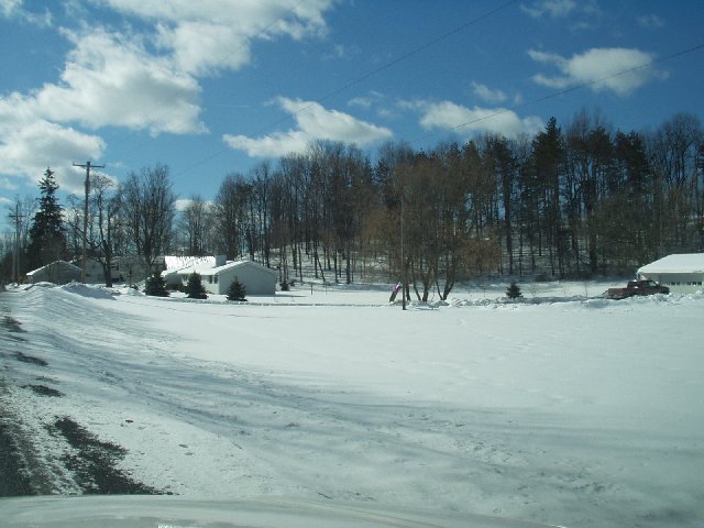 This is Delos Dann with the bull named Glen Pinowatchie" The background is the interesting part though. The building at the rear is his ice house, which stood next to the large shed (just visible to the left) that still stands on the property. Compare the bare hillside to today's picture, below: