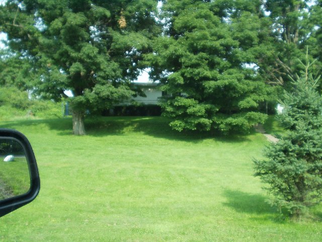 Laurance's barn was where these few trees are now, behind the small utility pole. (the modern house near there is recent... You can just see Laurance's shop beyond it; see next picture) It was a low spot, and every